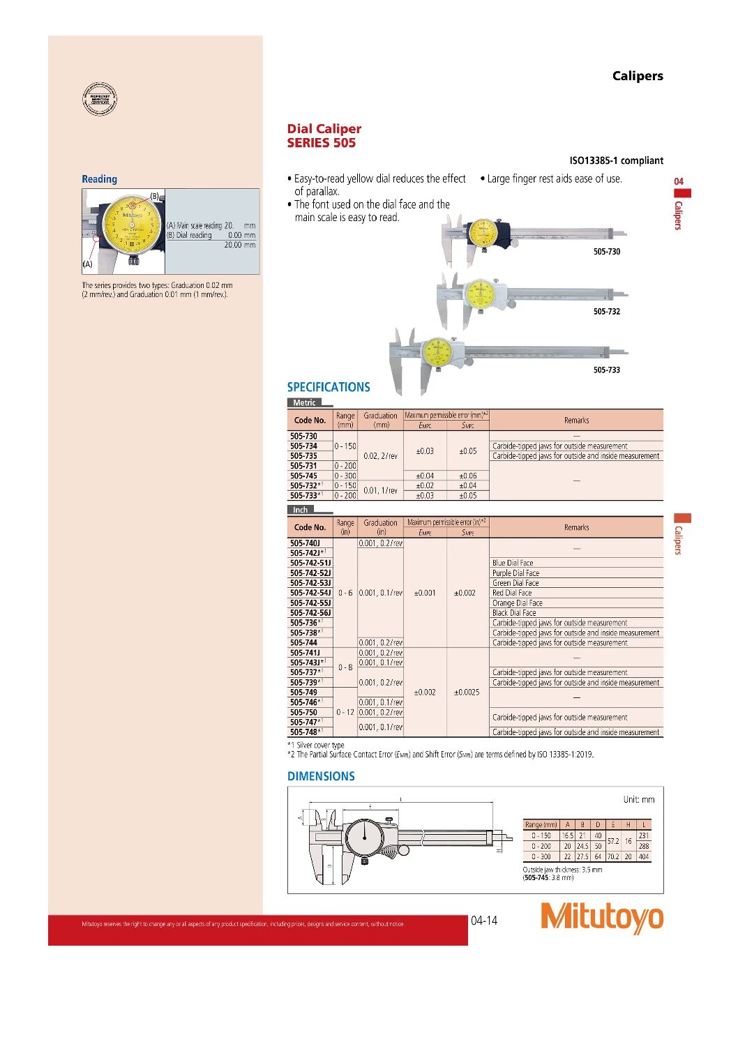 The Mitutoyo Dial Caliper is a reliable, high-accuracy measuring tool known for its durability and consistent performance. Ideal for users who prefer mechanical measurement without batteries, these calipers provide smooth, precise readings through its dial face compared to Vernier calipers. Perfect for outside, inside and depth measurements.