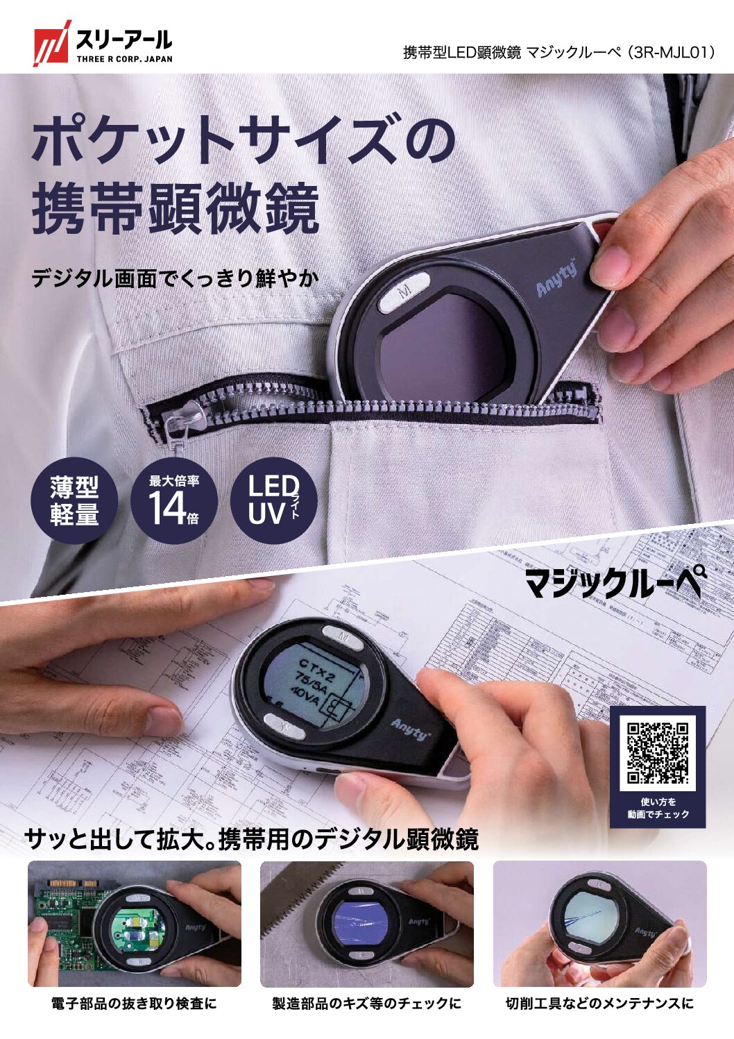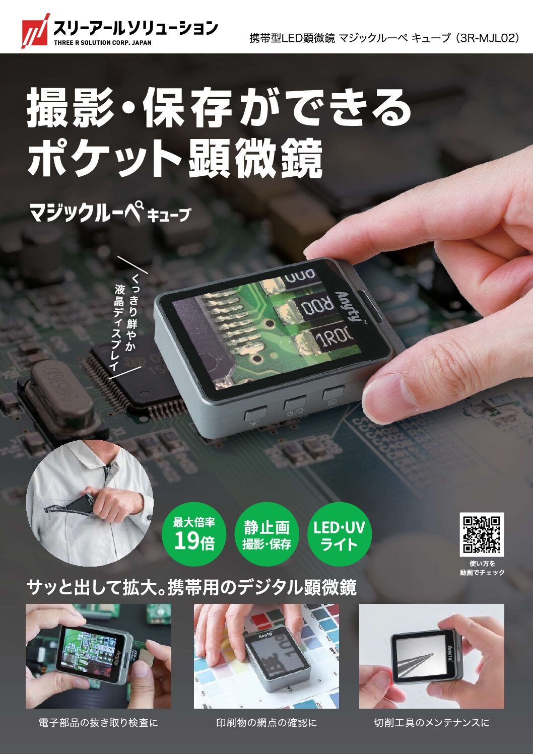 The Magic Loupe Series by 3R Solution Co., Ltd. (Japan) is a range of high-quality inspection loupes designed specifically for factory and manufacturing site inspection use. Extremely useful for daily inspection tasks such as visual inspection of parts, you can use it for checking machining conditions, confirming serial numbers, markings, and small printed characters.