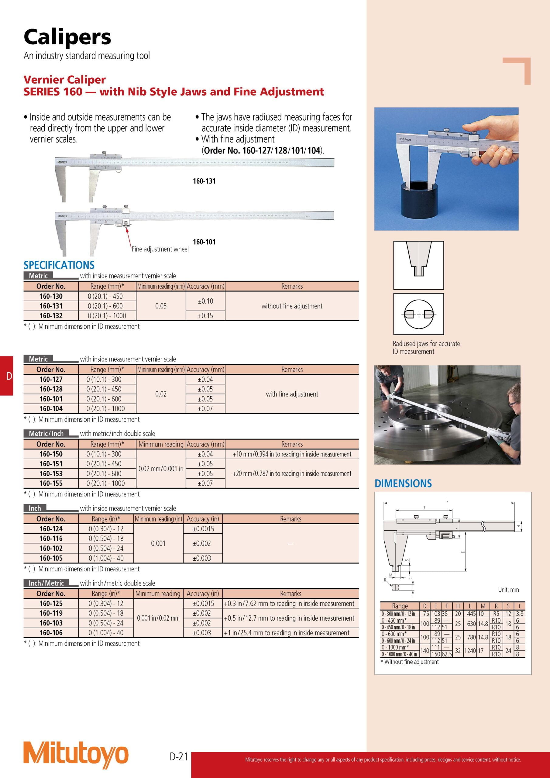 - The jaws have radiused measuring faces for accurate inside diameter (ID) measurement.