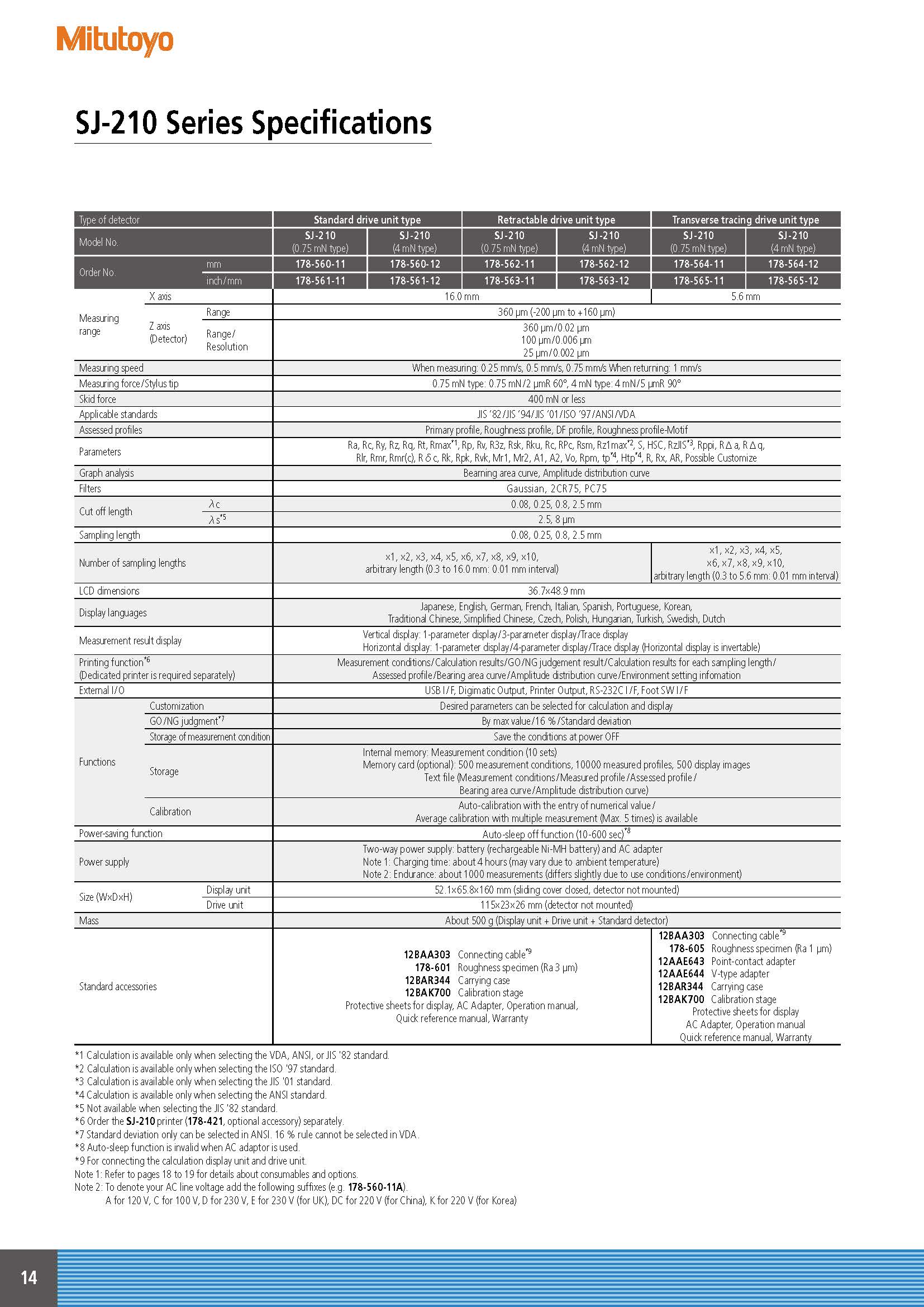 - The SJ-210 complies with the following standards: JIS (JIS-B0601-2001, JIS-B0601-1994, JIS B0601-1982), VDA, ISO-1997, and ANSI.